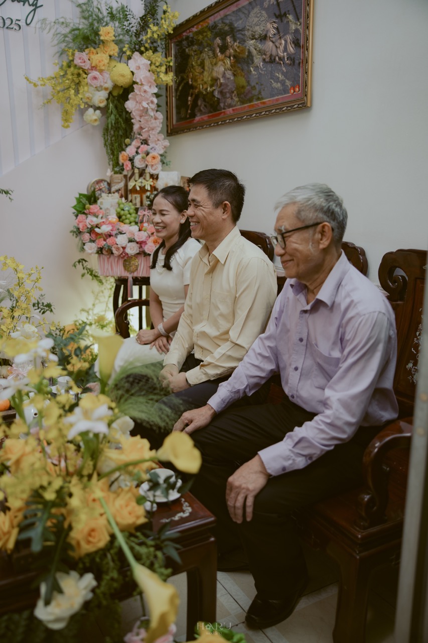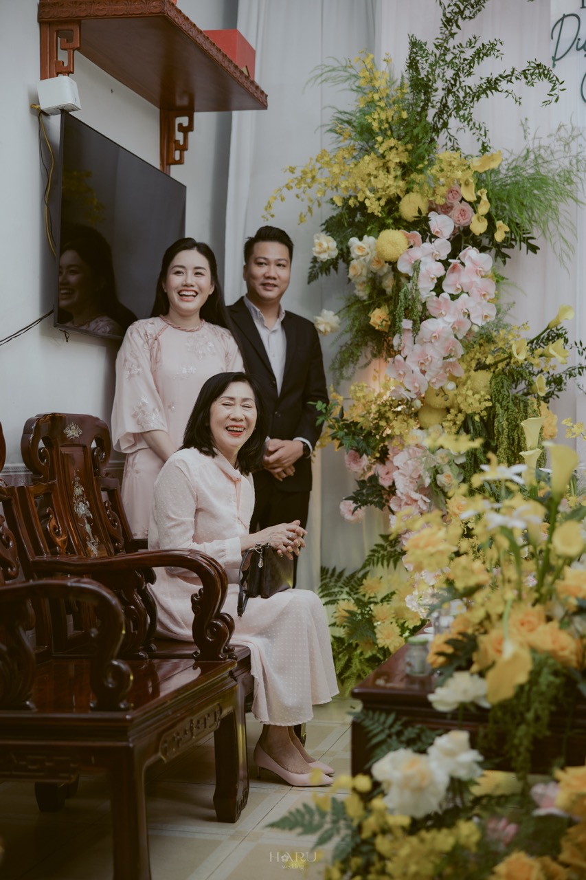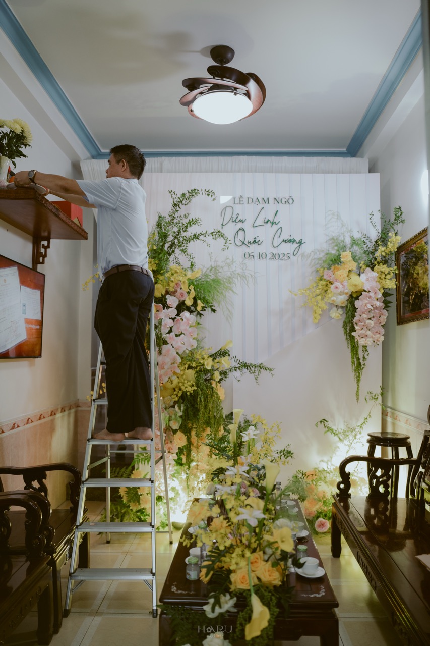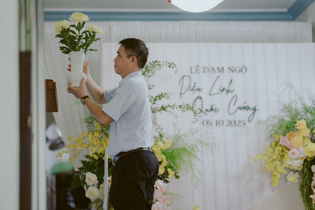 Ai cũng tất bật, người lo hoa, người chỉnh lại bàn trà, ánh mắt ai nấy đều ánh lên niềm vui và sự mong chờ. Còn tụi mình, đứng phía sau ống kính, chỉ lặng lẽ quan sát và ghi lại từng khoảnh khắc nhỏ — những cái nhìn, nụ cười, và cả cảm xúc khó nói thành lời.