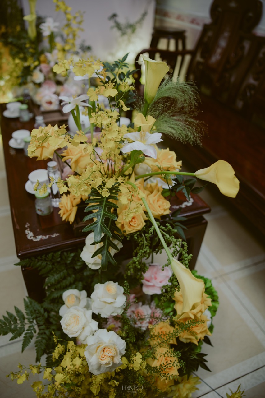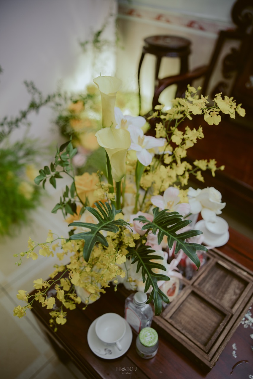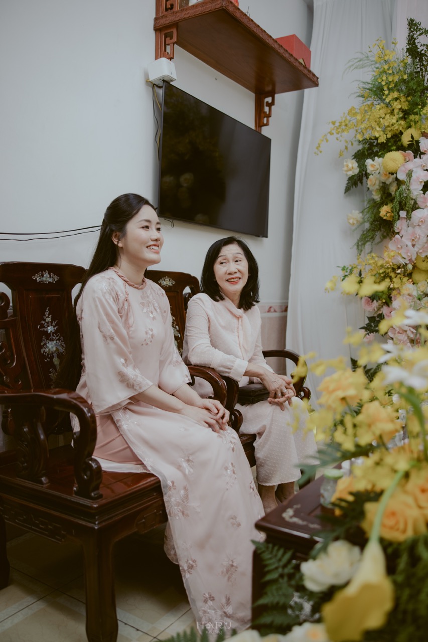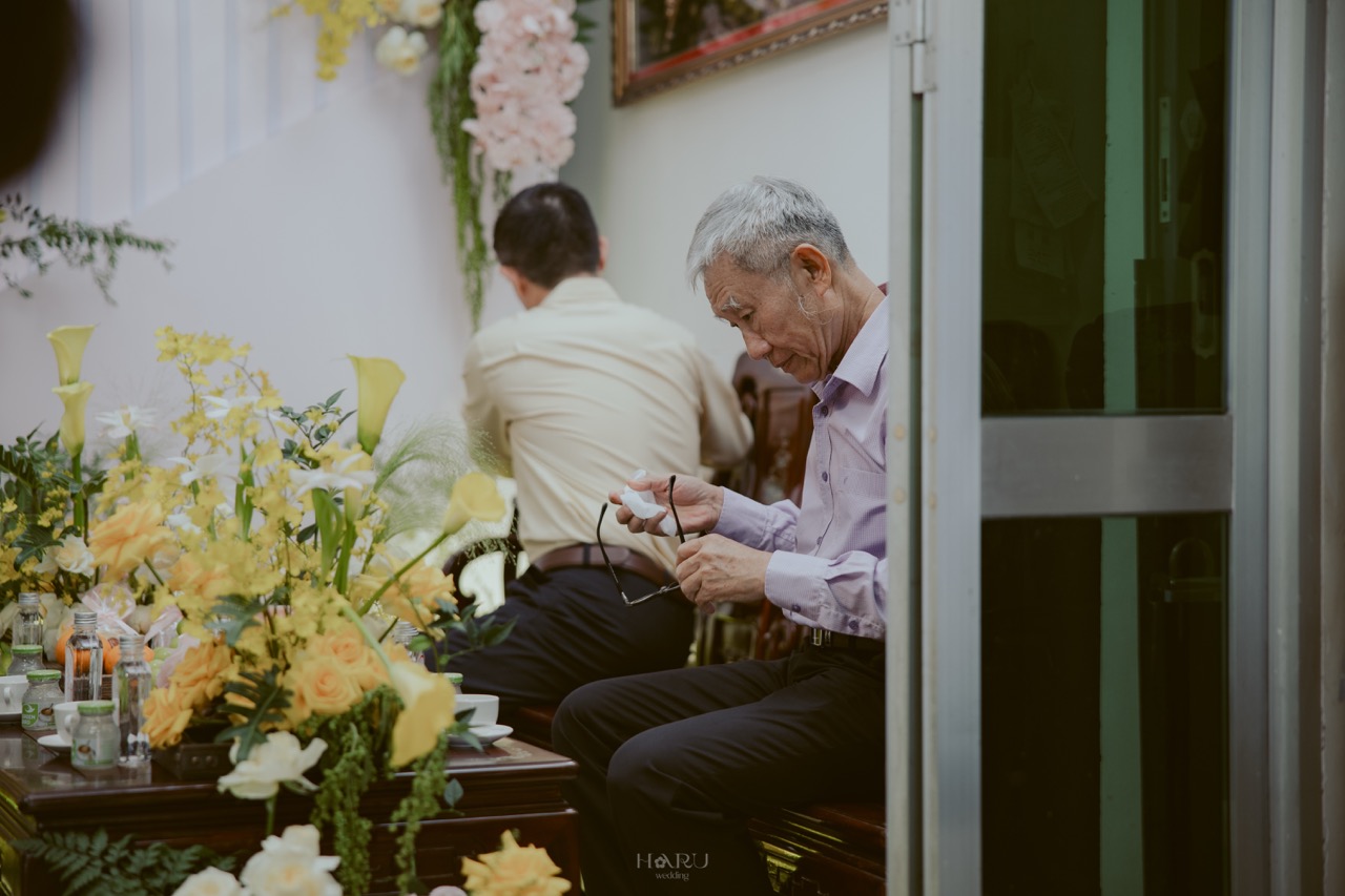 Ai cũng tất bật, người lo hoa, người chỉnh lại bàn trà, ánh mắt ai nấy đều ánh lên niềm vui và sự mong chờ. Còn tụi mình, đứng phía sau ống kính, chỉ lặng lẽ quan sát và ghi lại từng khoảnh khắc nhỏ — những cái nhìn, nụ cười, và cả cảm xúc khó nói thành lời.