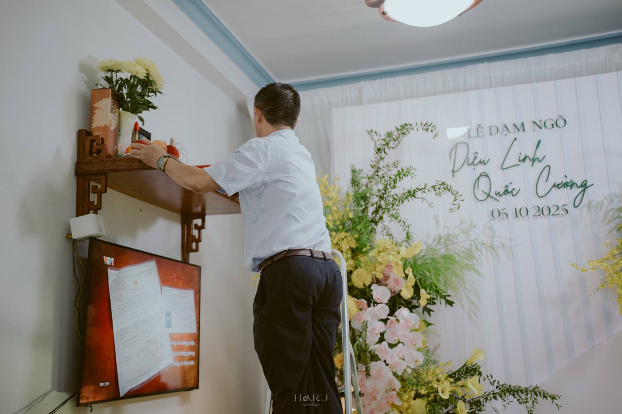Ngày dạm ngõ hôm ấy, cả nhà rộn ràng chuẩn bị từ sớm. Trong không khí ấm áp, vẫn đâu đó xen lẫn chút hồi hộp, lo lắng — cảm xúc rất riêng của những khoảnh khắc đầu tiên trên hành trình nên duyên
