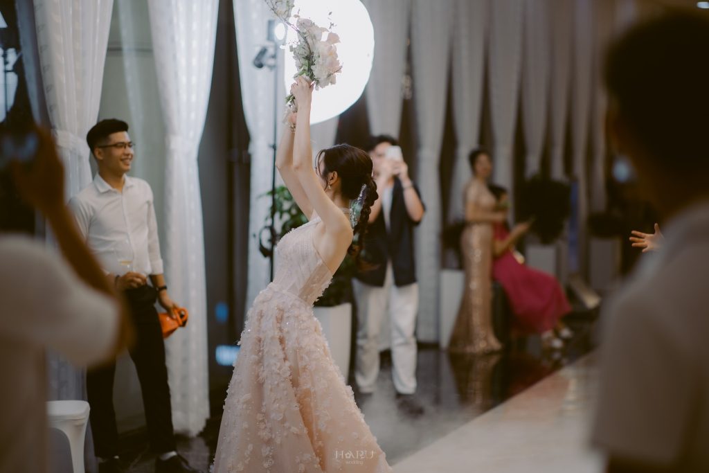 Trong khi đó, với một ekip chung, bạn chỉ cần trao đổi 1 lần trước ngày cưới. Đến hôm đó, cả team sẽ tự phối hợp và còn hỗ trợ bạn xử lý tình huống phát sinh (váy bị lệch, hoa cưới rơi, cần chỉnh dáng…).